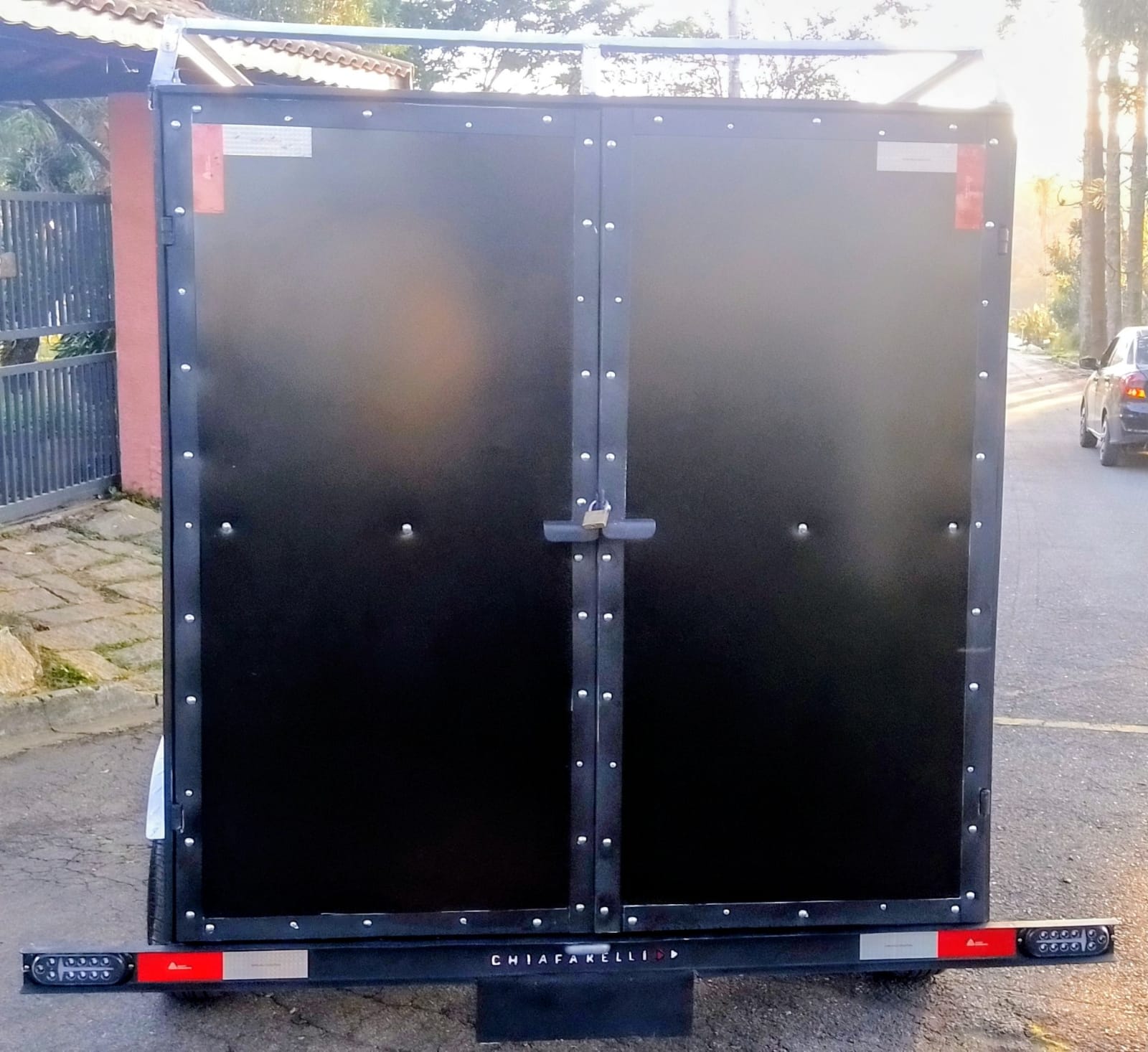 * Porta Traseira 2 Folhas Com Trincos e Puxadores Trava Para Cadeados.